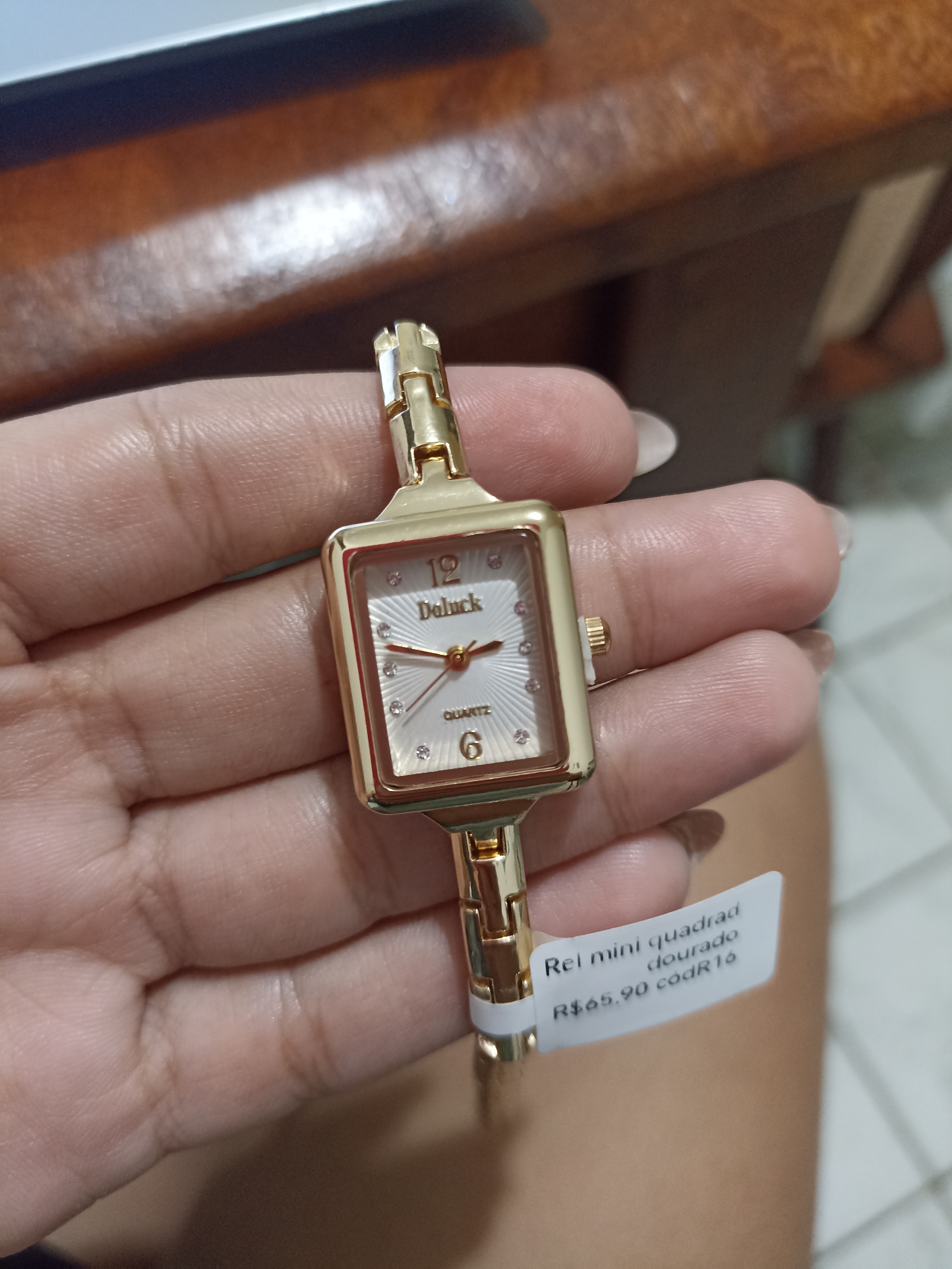 Relógio mini quadrado dourado